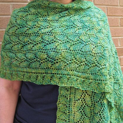 Any sport weight yarn or heavy fingering weight yarn can be used to knit this shawl. The one in the sample was knit with Lorna's Laces Shepherd Sport.