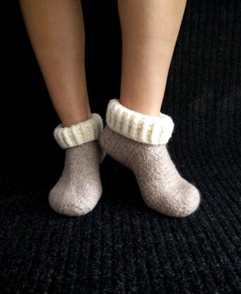 These boot slippers are very cozy and sure to keep you warm during cold winter nights. If you’ve never felted before, you will probably get hooked! It’s amazing to see your pieces transform in the washing machine as they shrink and the fibers intertwine. Plus, the intertwining of the wool keeps the cool air out. I’ve included sizes for Adult small, medium and large. Enjoy!