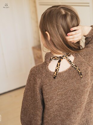The Wellington sweater, a versatile knitting pattern suitable for all girls, young or a little older. This pattern allows you to create a comfortable and fashionable sweater for yourself or a favourite little one, featuring a delicate ribbon bow for an extra touch of charm.