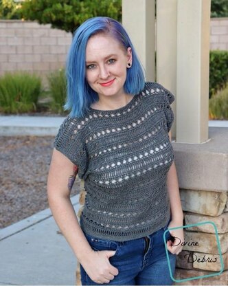 **Description:**Is it still warm where you are? Me too but that doesn’t mean that I’m going to go without some fun crochet clothes. A fun overlay on top of a simple tank top, the Wendy Top is easy to customize and a quick and easy pattern to make.