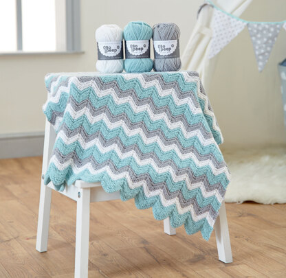 Each presentation box contains the Knitted Zig Zag Baby Blanket pattern and seven balls of West Yorkshire Spinners Bo Peep Luxury Baby DK yarn in the following colours: