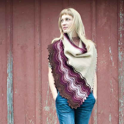 Weston is designed to combine the appearance of wearing a sideways knit shawlette with the ease of wearing a cowl – I call these hybrid designs cowlettes. This cowlette is inspired by the stitch patterns and striping of traditional Shetland Haps, and fastens with buttons at the back of the neck to stay perfectly draped in place.