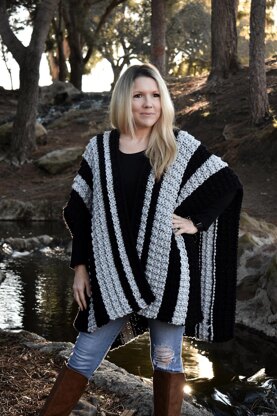 The Wetherby is an oversize and comfy Cape that drapes over you effortlessly and is like wearing a blanket on the chilliest of days. Makes an amazing treat yourself project or a gift for someone you love.