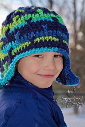 A little bit of texture with multiple color combinations make for a wonderfully warm winter hat! Fun to make and fun to wear, this hat’s unique texture will have everyone wanting one! Works up quick enough to make one for those fall/winter craft fairs! Uses a 5 weight yarn to make a very warm hat! Can be made with or without ear flaps!