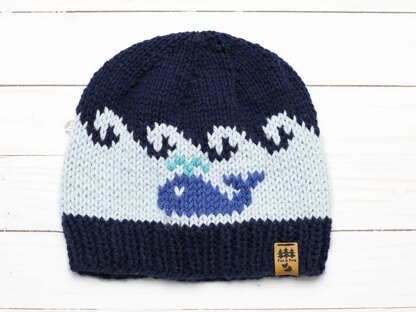 Our whale medium weight hat knitting pattern is perfect for making handmade gifts for your loved ones, young and old. The hat is knit in the wave pattern and the whale is added afterwards using the duplicate stitch technique to make it pop.