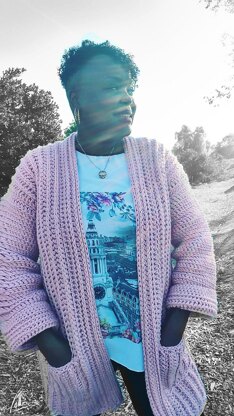 Made with Vanna's choice yarn in the color pink, or choose to opt for a more daring, vibrant variegated yarn and dare to be different! The choice is yours. Whatever you choose, this cardi will have everyone claiming "what a bum bum!"
