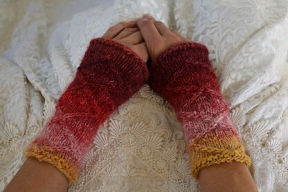 These wrist warmers (or fingerless gloves) are simple, cosy and great for use while typing on a keyboard or playing a musical instrument. There is no hole for the thumb so there is no bulk between the thumb and first finger.