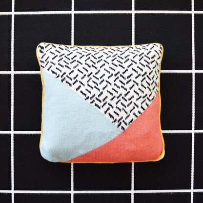 Use stranded and intarsia techniques to knit this woolen 20” [51 cm] square pillow and add the perfect touch of modernized 80’s to your decor! The What’s Your Angle Knit Pillow is worked in 3 pieces, and seamed together on 4 sides, to form a cozy slash back pillow case for easy-care. It is trimmed in 4 stitch i-cord “piping” for the perfect finishing touch.