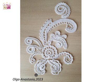 Modern crochet Irish lace pattern White composition of antique crochet motifs . A detailed pattern for all crochet motifs - a graphic diagram, a photo and a verbal description of each crochet row. PDF file for 54 pages Design work by Starostina Olga.