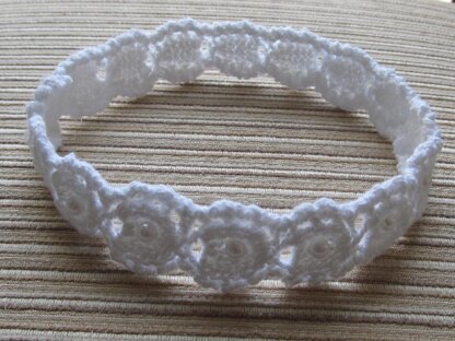 White Cotton Lacy Headband with Pearl Beads