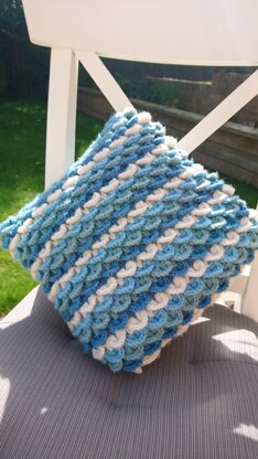 This cushion uses crocodile stitch and a charming seaspray colour palette to recreate the look of crashing waves.