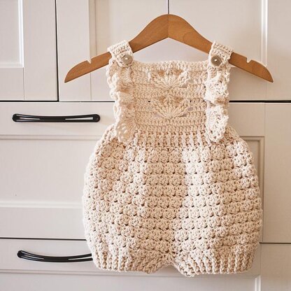 Rompers are fun to make and super cute to wear. The sample is made with wool blend yarn, but you can use cotton yarn as well. It is better if it is a bit of a stretchy cotton, like some cotton blend yarns or bamboo yarn.