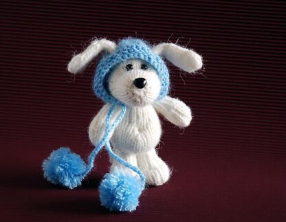 Pattern contains description how to knit puppy and his hat with holes for ears.