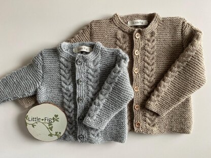 This cardigan is designed to be a boxy, structured fit. The body is worked in one piece, divided at the armholes for fronts and back to be worked separately. Sleeves are worked flat, with a shaped cast off to create a set in jacket-style squared shoulder. The cable pattern is written and charted.