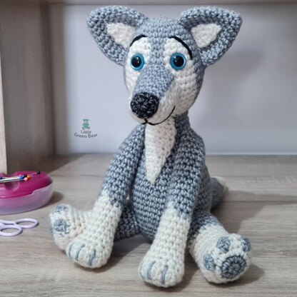 Wilbur, the handsome little wolf, loves going for long walks – sometimes up to 20 miles a day – but is always back home in time for howling at the moon with his very large family. He sits 9 inches tall (when made with recommended materials).