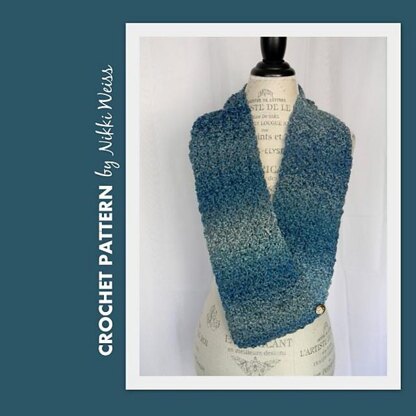This beautiful scarf is held together with a button closure at the bottom, giving it the look of an infinity scarf. The colorwork is achieved automatically with two strands of yarn and comes out quite amazing with no extra effort. A simple one-row repeat using basic stitches makes this a project for any skill level, and the large hook makes it work up quickly. You don't have to be an expert to make something beautiful. You just need some beautiful yarn with a pattern that is designed to show it off!