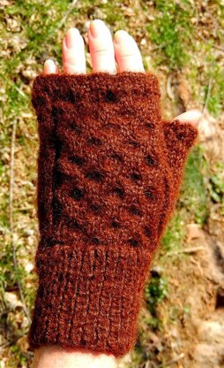 Ladies or men's fingerless mitts knit using 1 skein of 100% Natural, Undyed, Sport Weight Alpaca yarn from Five Oaks Farm. This yarn has 175 yards per skein and can be purchased directly at www.etsy.com/fiveoaksfarm. Or, you may use any sport weight yarn that will give you a comparable gauge.