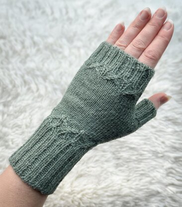 These soft and warm fingerless mitts make a great go-to winter accessory or cherished gift. Perfect for adding extra warmth while still keeping fingers free for everyday tasks like typing, knitting, using your phone, drawing, etc. This pattern is adorned with a decorative motif that was inspired by lattice style garden fences made of braided willow, which adds just enough detail to feel special. Knitted in the round from the bottom up with a 2x2 rib cuff, decorative stitch pattern at the wrist (both written instructions and a chart are included for the decorative stitch), stockinette for the hand section, another decorative stitch pattern at the top of the hand that mirrors the one at the wrist, and a 2x2 rib top cuff and thumb that end just before the knuckles. Italian cast on and Italian sewn bind off are used in this pattern, but any other stretchy cast on and/or bind off may be used if preferred.
