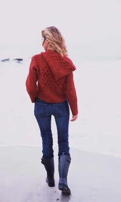 A popular design with so many knitters, Windsor features a showstopper Celtic cable motif on the center back, a sporty zip up front, and a cozy hood.
