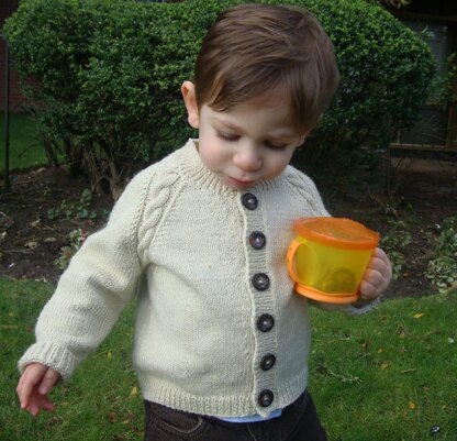 Difficulty: Intermediate Sizes: 6 mo (12 mo, 18 mo, 2, 4, 6, 8, 10) Chest measurement: 17 (18, 19, 21, 23, 25, 26.5, 28)” Finished measurements: 21 (22, 23, 25, 27, 29, 30.5, 32)” Yarn: Debbi Bliss Baby Cashmerino (55% Wool/33% Microfiber/12% Cashmere, 137 yd 125m / 1.76oz 50g, Color #53, Butter), 4 (4, 4, 5, 6, 7, 8, 8) skeins, 450 (510, 540, 600, 650, 830, 1020, 1090) yds Gauge: 25 sts, 34 rows = 4” in St st Needles: US 2 (2.75 mm), US 3 (3.25 mm), and DPNs for working sleeves in the round (or any needle size that gives correct gauge