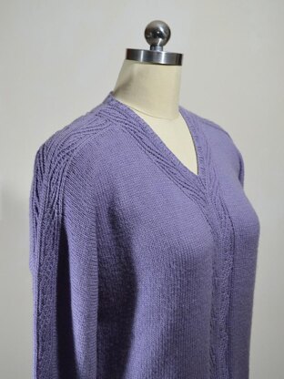Twisted stitch bands embellish the shoulders, neck, and front of this elegant pullover. Worked in sportweight yarn, with a simple, unstructured silhouette, this versatile sweater is both casual and stylish.