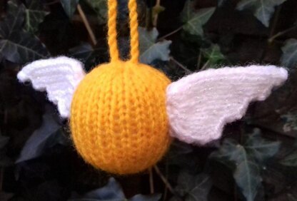 This winged golden bauble is perfect for using up those odds-and-ends of DK yarn for crafty decorations!