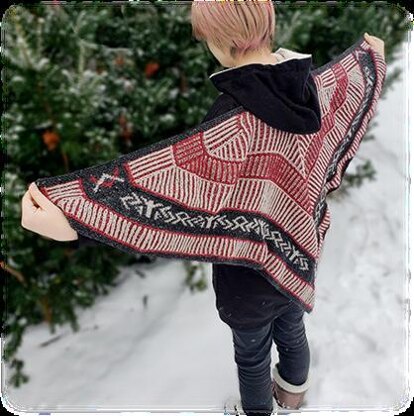 Wings and Runes is a Nordic-inspired shawl incorporating syncopated brioche knitting (meaning the main colors occur in the pattern as both positive and negative), along with two-stranded colorwork. The piece is knit from the neck down, using deceptively simple Brioche and Knit increases to achieve the “spreading wings” motif. A panel of ancient Nordic symbols called Runes impart messages of empowerment to the wearer. This is a perfect pattern for the knitter who has dabbled in Brioche and wants to take it up a notch.
