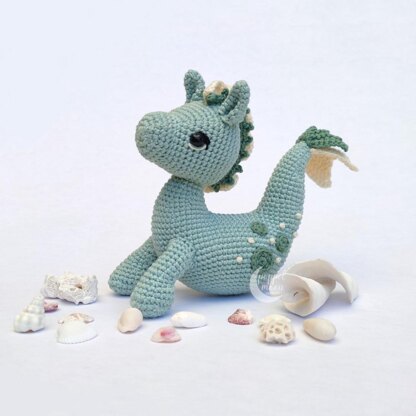 Winnie the hippocampus is a perky little mermaid horse who is always ready to play! If you love mythical amigurumi creatures, Winnie's pattern is a must-have for your collection! The 16-page pattern (US crochet terms) has more than 50 pictures to guide you in making your hippocampus. Winnie's special feature is her easy-to-make moveable head, which only requires a button! This pattern involves shaping, surface crochet, and also requires making French knots (step-by-step pictures are included for how to make the French knots). MATERIALS: Hook: 2.5mm, Yarn: sportweight in 3 colors, Small amount of black, white, and green sportweight yarn for eye details, Stuffing, Safety Eyes, Button for the moveable head, Stitch Markers, Pins, Tapestry Needle, Embroidery Needle (eyes details), Scissors, Measuring Tape, Small Pliers (for French knots, optional). SAFETY NOTE This toy is not for children under 3 years old since the safety eyes are considered a choking hazard.