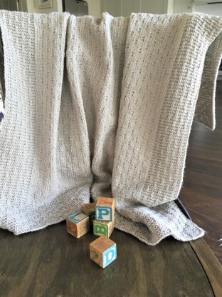 This easy-to-knit baby blanket features a wide garter stitch border with stocking stitch vertical stripes, and an inverse version of the pattern in the central panel. The blanket is knitted in one piece, so requires no sewing.