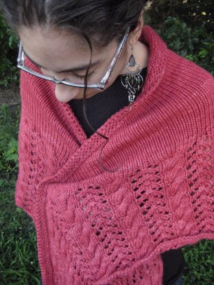 Winter Apple was inspired by the desire for a pretty accessory that was also warm and comforting. The touch of lace hints at femininity while the cables keep it substantial.