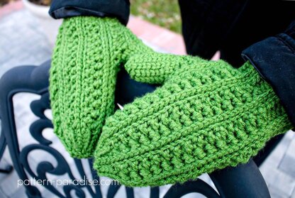 These mittens are my favorites! They have a knit look, fit well and are very warm. They are worked flat from band to tip and then seamed so construction is super easy.