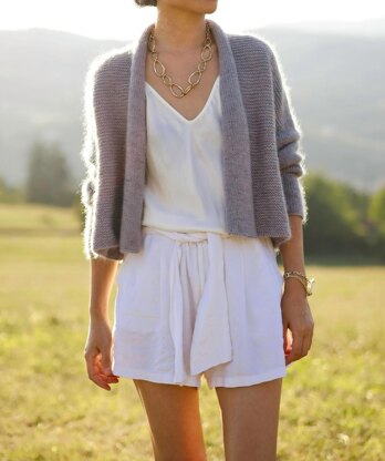 If you like cardigans and don't like purling, you will love this garter stitch cardigan! It is worked almost seamlessly from the top down. It is mostly made with knit stitch. The rolled front band is worked at the same time as the cardigan, making it easy to adjust the length. The shoulders are shaped to make sure that the cardigan hangs well. The sleeves are worked in Stockinette stitch to echo the front band. The only difference between this pattern and the Moonlight Cardigan is the addition of the sleeves.