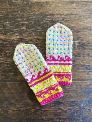 Brighten up the steely grey cold months with some bright and cheerful mittens! With sport weight yarn and fun colourwork (no long floats!) to keep you engaged, this pair is a fun project for experienced knitters. Customize the fit by shortening or extending the pattern by a row here and there, and - pro-tip - I wear thin white cotton eczema gloves underneath to avoid catches on the inside stranding. Best of all, these match my Winter Sparkle Socks which is a minimally-guided pattern that is available for free!