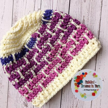 COMPLETED SIZE: made with DK weight/8ply yarn, this beanie is an Adult Small size. The Size of the beanie is very adaptive and can be made in different sizes by adjusting the repeats/ changing hook size or yarn weights.