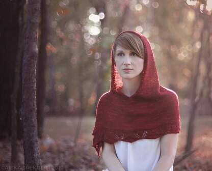 Winterberry Hood is an asymmetrical, hooded caplet inspired by the classic fairy tale, Little Red Riding Hood that was originally designed for Woolgirl's Once Upon A Time club in September 2012. The caplet has a roomy neck and open arm for a flexible fit on many shapes and sizes.