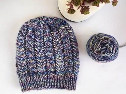 About: Wistful Winter Hat is a Bulky Hat design. It is so quick to work up with a very snuggly 12ply yarn. I love Malabrigo for its buttery softness and stitch definition. Designed with a larger twisted cable, running between two smaller cables, this pattern is both written and charted for working in the round in a range of sizes. Alternative instructions are given for twisted stitches on the 2 stitch cables.