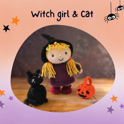 Finished size: Girl 14cm, Cat 7.5cm, Lantern 5cm The girl pattern is similar to the one previously published in LGC magazine in 2020. All parts are knitted flat and sewn up at the end. No circular knitting is required. The outfits are sewn to the body and are not removable. The project calls for small amounts of DK (8-ply) yarn. Feel free to use your stash. 8 pages Yarn DK yarn • [A] 10g Purple • [B] 7g Peach • [C] 12g Black • [D] 5g Cranberry red • [E] 5g Yellow-green • [F] 7g Yellow • [G] 5g Orange Oddments of 4-ply (fingering) yarn • Pink • Grey Tools & Supplies • 3mm knitting needles • Stitch holder • Chenille needle • A pair of 5mm mushroom-shaped eye beads • Cotton thread • Toy stuffing • Black felt sheet • Fabric glue • Pink pastel