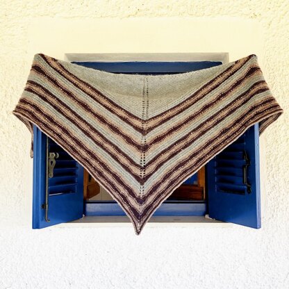Within the Lines is a triangular shawl worked from the top down in three colours of aran weight yarn. At first glance this may look like a normal striped shawl but Within the Lines uses slipped stitches make some of the stripes go a little wonky. So you’re still colouring within the lines; you just get to bend those lines ever-so-slightly!