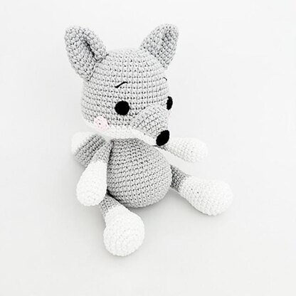 The wolf measures approximately 18 cm in a seated position when using the materials mentioned above. If you are using yarn with a different gauge the toy’s measurements will change. Feel free to use any yarn you want, the toy itself won’t change, just the size. Make sure you sew tightly every part of the toy.
