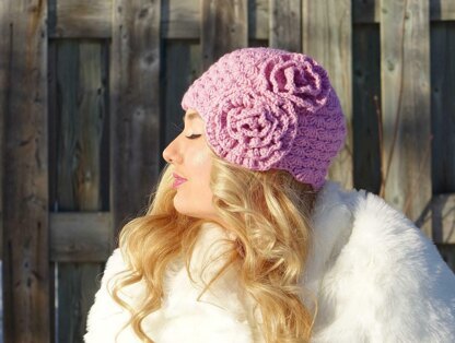 Woman crochet hat ROSES. Original size- adult, can be created smaller for kids. This hat was created from LOOPS&THREADS impeccable #4, color "soft rose" (277yds/4.5 oz)