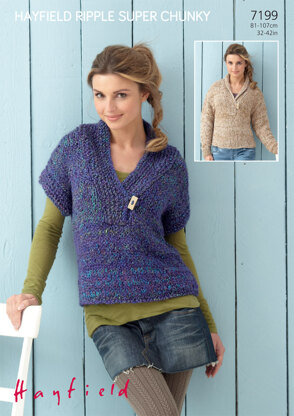 Woman's Sweater and Sleeveless Top in Hayfield Ripple Super Chunky - 7199 - Downloadable PDF ist eine Anleitung zum Knitting von Hayfield, die als Herunterladbares PDF in den folgenden Sprachen verfügbar ist: Englisch. Besonders geeignet ist sie für alle, deren Können bei einzustufen ist. Probiere sie noch heute aus und kreiere dein nächstes Meisterwerk!