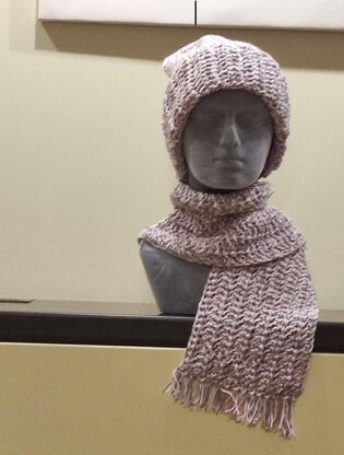 Woman tweed set: hat and double-sided scarf.