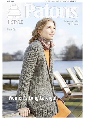 Women's Long Cardigan in Patons Fab Big - 4040