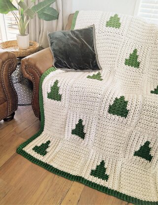 Finished Size: Each square measures approx. 10” wide. Sample blanket was 70” x 50”, plus edging, made up of 35 squares (5 x 7): 18 trees & 17 plain.
