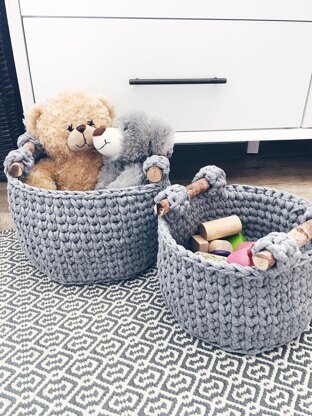 Take control of the clutter! Whether its toys, yarn, or your favorite books, they will be organized in these sturdy nesting baskets. Bring a little bit of nature inside with the wood handles. You can use sticks or wood dowels from the hardware store.