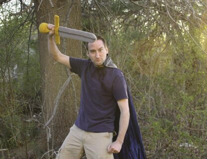 Every knight needs a sword, but the knight's mother would probably appreciate it if the sword did minimal damage to the knight's brothers, cat, and furniture. Enter Woolbringer: a knitted sword.