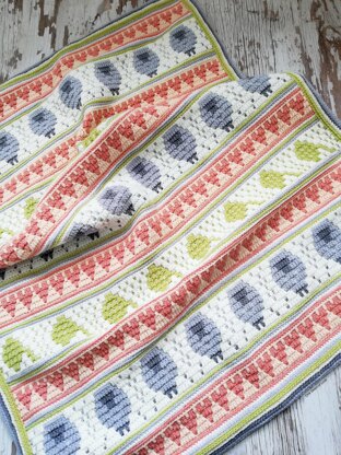 The pattern is great for a newbie to mosaic crochet as it has photos for every row of the blanket and every round of the border. Pattern also has written instructions and charts for every one of the 3 patterns - hearts, sheep’s and balls of yarn.