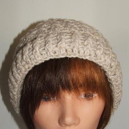 Toasty warm cap with crossed stitches.
