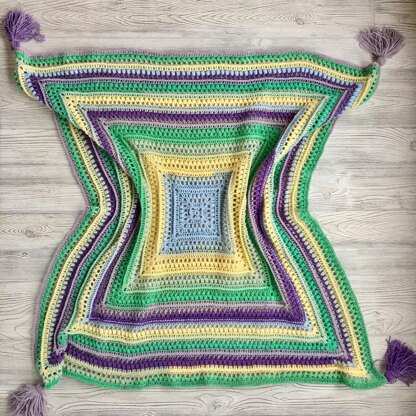 Blanket is square and could easily be made into any size just by adjusting the number of rounds.