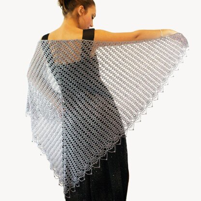 Sheer elegance describes this delicate triangle shawl. From Row 4 until the edging the pattern is a simple 2-row repeat that is quick to memorize. The pretty beaded border adds a touch of glimmer and enhances the drape of the shawl. Despite the intricate look of the fine fabric the shawl is relatively simple to make and you will be surprised at how fast it actually works up.